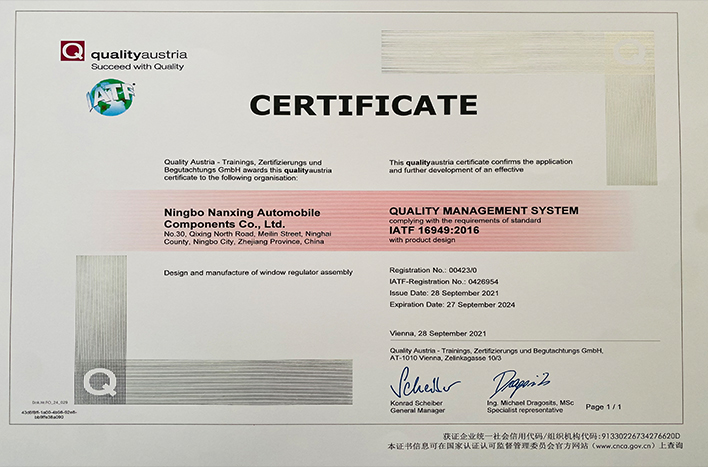 Ningbo Nanxing Auto Parts Co.,ltd는 윈도우 레귤레이터 어셈블리를 설계, 개발 및 생산하는 데 20년 이상의 경험을 보유하고 있습니다. 우리는 독일 ...